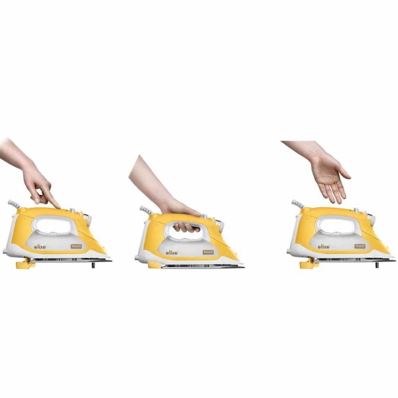 - ProPlus Smart Iron Auto-Lift – Tryk blot på håndtaget, og strygejernet sænkes, klar til at arbejde. Fjern hånden og “fødderne” løfter strygejernet og forhindrer brændt stof. At holde strygejernet vandret er ikke kun sikrere, men det sparer også tid og det skåner dine håndled og skuldre!